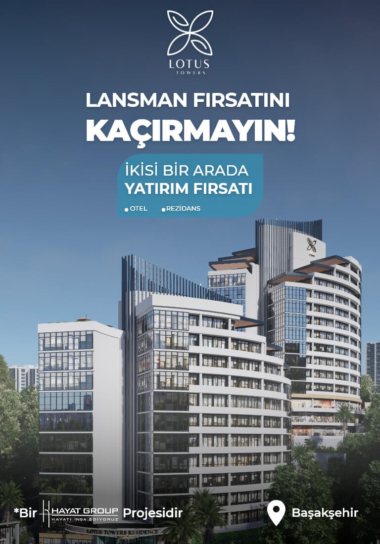 İş ve yaşam merkezleriyle öne çıkan Başakşehir’in en stratejik lokasyonlarından birine sahip Lotus Towers projesi, doğanın ve hayatın tam içinde, bölgenin en büyük karma yaşam projesi olarak hayata geçiriliyor. Otel, rezidans ve ticari alanlardan oluşan proje, 8 dönümlük bir arazide toplam 37.000m² inşaat alanı üzerinde yükseliyor. Yeşil ve doğayı konfor ve yüksek hizmet standartları ile birleştirme hedefiyle yola çıkan Lotus Towers, 3.000m²’lik peyzaj alanı ve fitness, spa, hamam, jakuzi, konferans salonu, kapalı havuz gibi sosyal olanakları ile hayatın merkezinde yer almayı planlıyor. Leed Sertifikası’na sahip projede doğayla uyumlu özgün mimari sürdürülebilirliğe vurgu yapıyor. Merkezi lokasyon avantajı sunan Lotus Towers, Çam Sakura Şehir Hastanesi’ne 200 metre, İstanbul Havalimanı’na 20 km, Botanik Park’a 5 km, Olimpiyat Stadyumu’na 2 km ve Mall Of İstanbul’a sadece 6 km uzaklıkta bulunuyor.